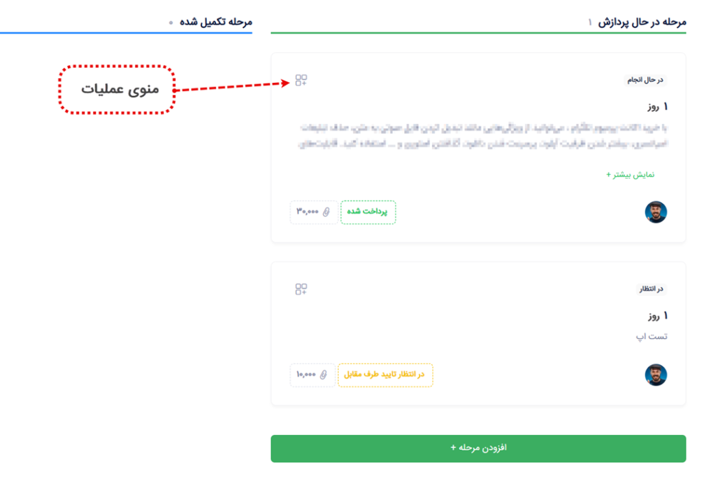 - مرحله جدید توسط کارفرما اضافه میشود.